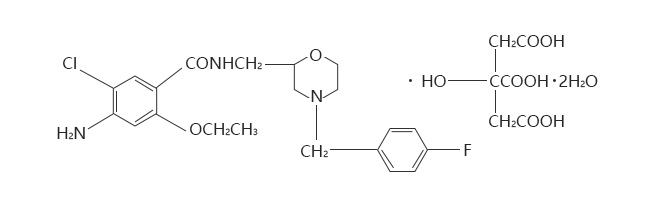 化学名称:4-氨基-5-氯-2-乙氧基-N-[[4-(4-氟苄基)-2-吗啉基]甲基]苯甲酰胺枸橼酸二水合物。
